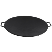 Садж чугунный - это выгнутая сковорода большого размера, использующаяся на огне: на мангале, на газовой плите, на специальной печи и др. Чугунный садж можно использовать как на выпуклой поверхности для приготовления лепешек, так и на вогнутой стороне для различных блюд. Данный садж имеет диаметр 35 см и выполнен из чугуна, толщина которого 8 мм. Чугун как раз подходит для такой вещи, так как он равномерно прогревается и очень долго сохраняет полученное тепло. По краям чугунного саджа 2 боковые литые ручки. Литые ручки надежнее, чем ручки на клёпках, и сварных ручек, потому что изделие отливается целиком и монолитно.
