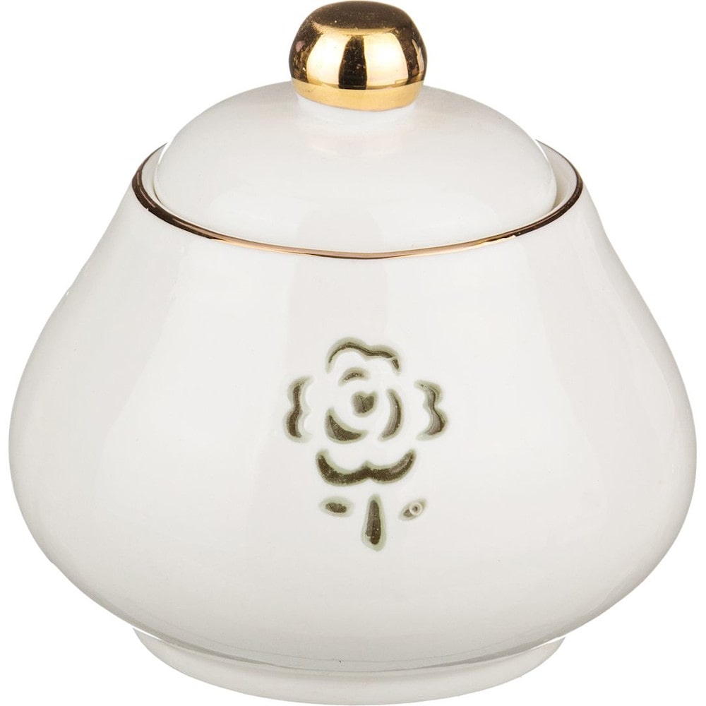 Особо хотелось бы отметить и непревзойденный дизайн сахарницы. Модель выполнена из высококачественного фарфора и украшена золотистой каймой.