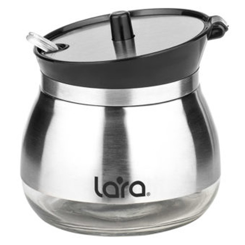 Благодаря практичному дизайну и необычной форме Сахарница LARA станет заметным аксессуаром в оформлении вашего стола. Для производства были подобраны экологичные и безопасные материалы. Чаша выполнена из толстого прозрачного стекла с декоративной защитной накладкой из высококачественной нержавеющей стали с матовой отделкой. Крышка из пластика черного цвета защитит содержимое от влаги, пыли и посторонних запахов. Легкий уход обеспечивает разборная конструкция, которую можно промыть под краном или воспользоваться посудомоечной машиной.
