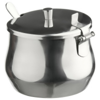 Сахарница всегда пригодится в хозяйстве. Данная модель выделяется оригинальным дизайном с зеркальной полировкой, благодаря чему эстетично будет смотреться на кухне. Сахарница изготовлена из долговечной нержавеющей стали. Корпус ударопрочный, хорошо защищён от царапин и внешних повреждений. Поверхность и внутренняя часть легко очищаются от остатков сахара или любых загрязнений. Изделие можно мыть в посудомоечной машине.