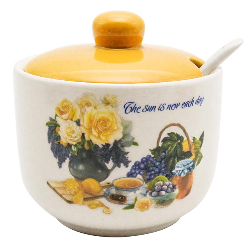Сахарница "Солнечный день" прекрасно подойдет для хранения и сервировки сахара. В комплекте ложечка. Отлично подойдет в подарок. Упакована в картонную коробку.