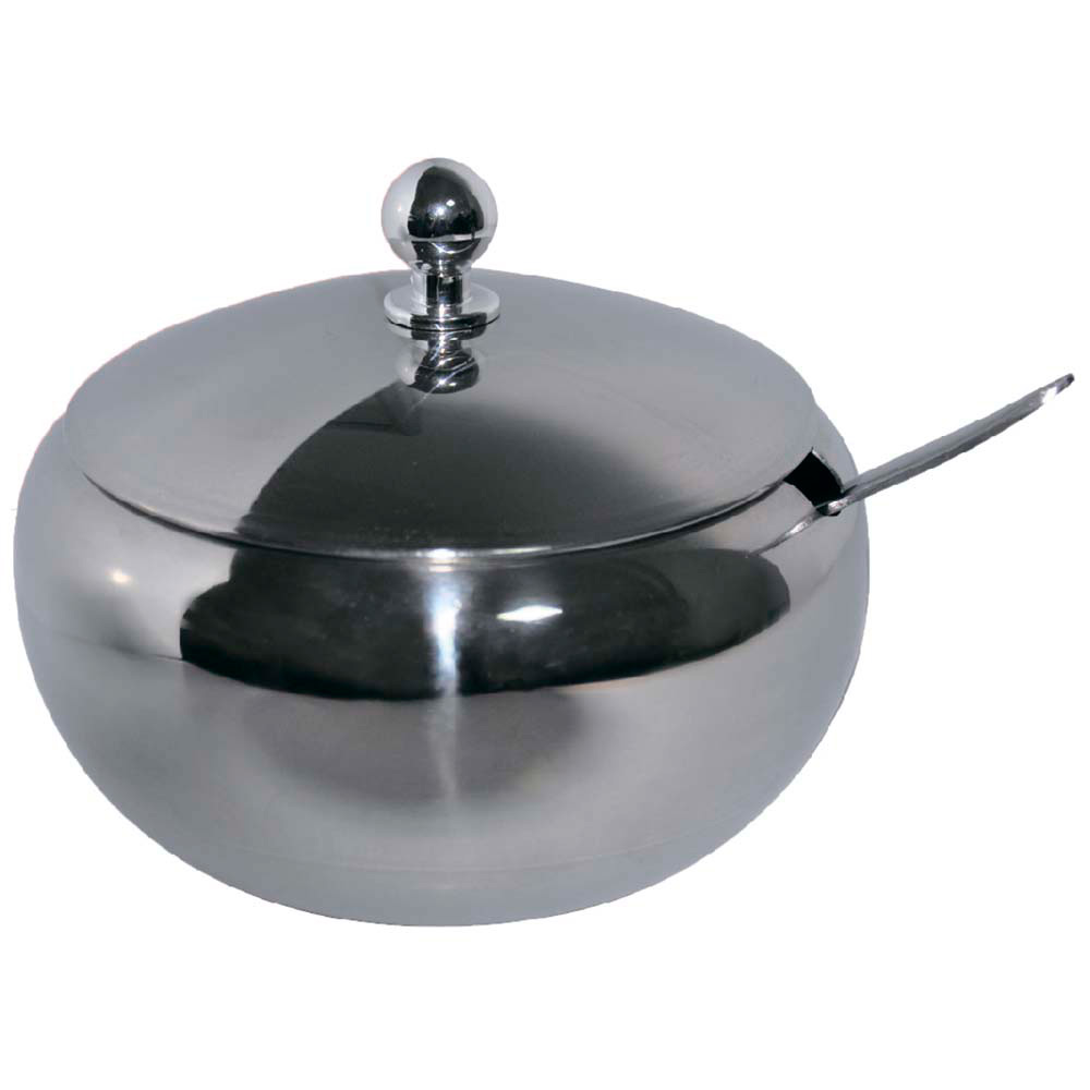 Сахарница с ложкой изготовлена из высококачественной нержавеющей стали , которая чрезвычайно устойчива к коррозии, воздействию разного рода кислот и щелочей (не окисляется).