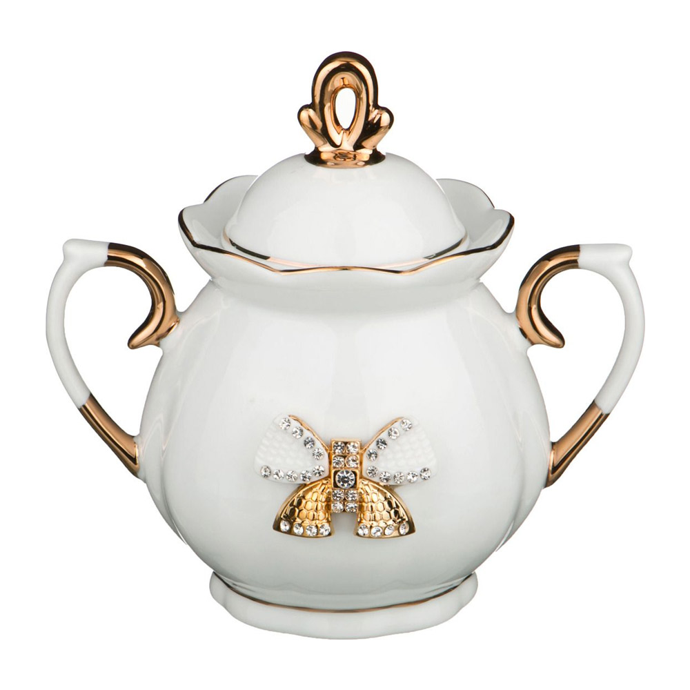 Украшенный стразами бантик придает сахарнице оригинальности и изящества.