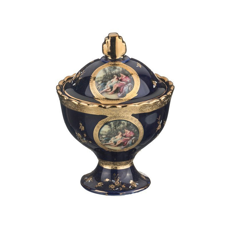 Элегантная сахарница "Влюбленная пара" с крышкой на высокой ножке - это настоящее произведение искусства, которое прекрасно дополнит сервировку стола.
