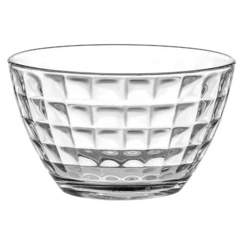 Салатник "Монарх" изготовлен из бесцветного стекла и украшен рельефными гранями.