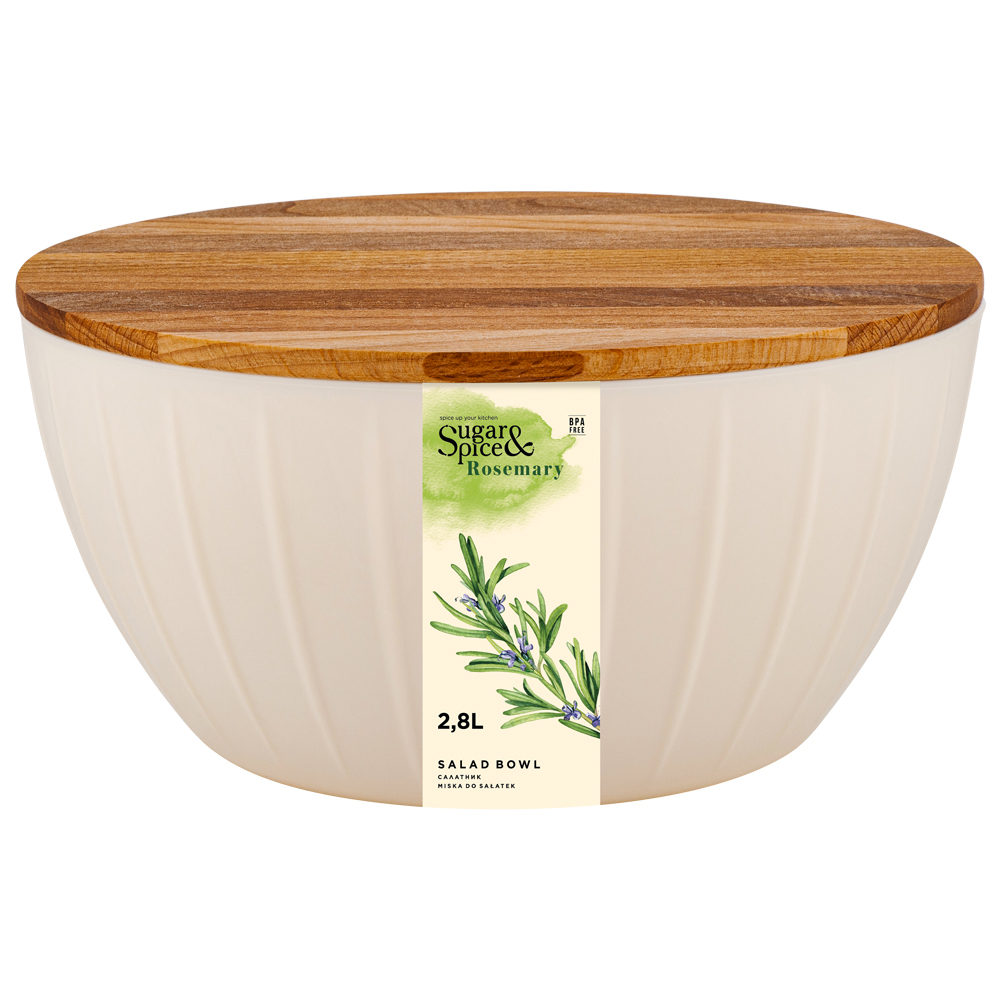 Салатники неизменно притягивают к себе взгляд благодаря сочной цветовой палитре и оригинальному оформлению стенок. Салатник на столе - это не только удобство, но и украшение. Фруктовые, овощные, мясные и рыбные салаты будут смотреться аппетитно и изысканно в изящном салатнике. Крышку из натурального дерева можно использовать как разделочную доску или отдельно для подачи хлеба, пирожных и фруктов. Крышка плотно прилегает к салатнику, тем самым поможет дольше сохранить свежесть продуктов. Крышку салатника можно мыть только вручную. Салатник выполнена из плотного пищевого пластика (не содержащего бисфенол А).