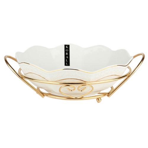 Уникальный набор в виде салатника и подставки выполнен в классическом стиле.