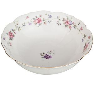 Салатник изготовлен из фарфора. Этот материал издавна вошел в обиход человека, ведь его главными свойствами являются натуральность и экологичность. Классический стиль и универсальная цветовая гамма изделия придадут Вашему ужину еще большей гармонии, эмоциональной наполненности и добавят нотку романтичности.