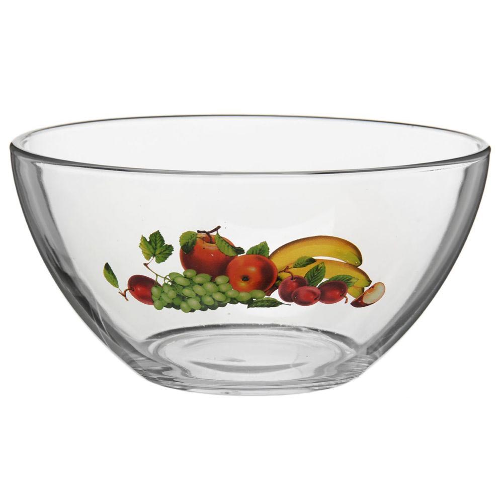 Салатник "Фруктовая Феерия 1" изготовлен из бесцветного стекла и украшен ярким рисунком.
