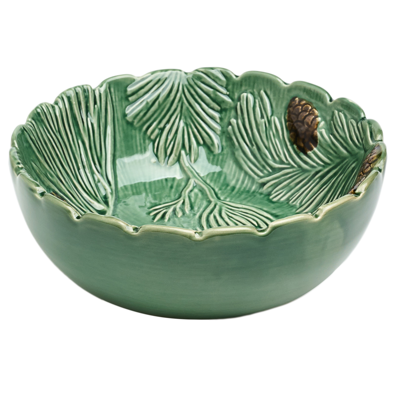 Наша посуда отличается насыщенными зелеными оттенками, которые ассоциируются с зимним лесом и свежестью природы. Объемные шишки и сосновые ветки, изящно оформленные на поверхности изделий, создают поистине волшебную атмосферу, способную перенести вас в сказочный лес. Эти элементы дизайна представлены с особым вниманием к деталям, что подчеркивает уникальность каждого изделия.