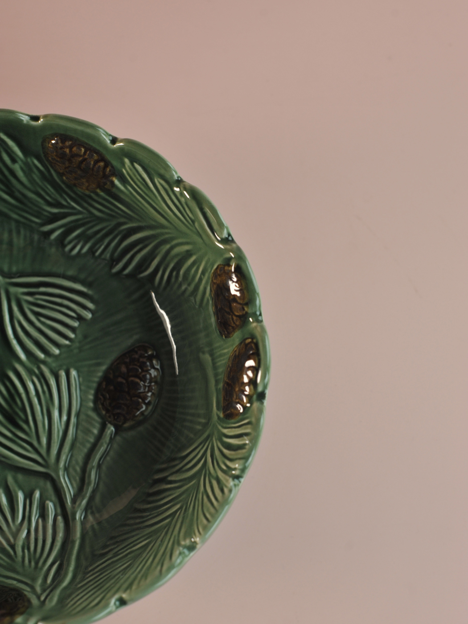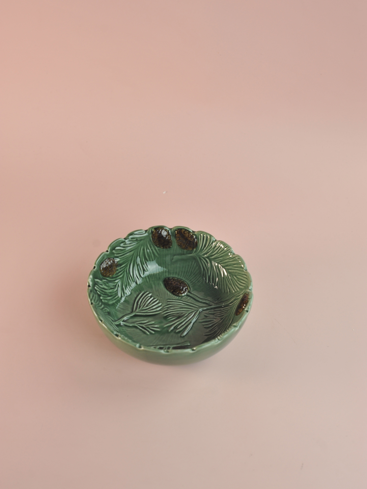 Наша посуда отличается насыщенными зелеными оттенками, которые ассоциируются с зимним лесом и свежестью природы. Объемные шишки и сосновые ветки, изящно оформленные на поверхности изделий, создают поистине волшебную атмосферу, способную перенести вас в сказочный лес. Эти элементы дизайна представлены с особым вниманием к деталям, что подчеркивает уникальность каждого изделия.
