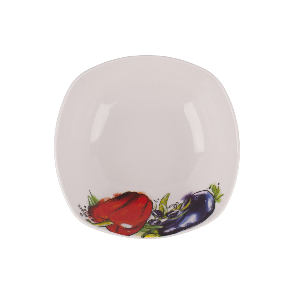 Салатник объемом 550 мл. Квадратный с деколью Овощи.