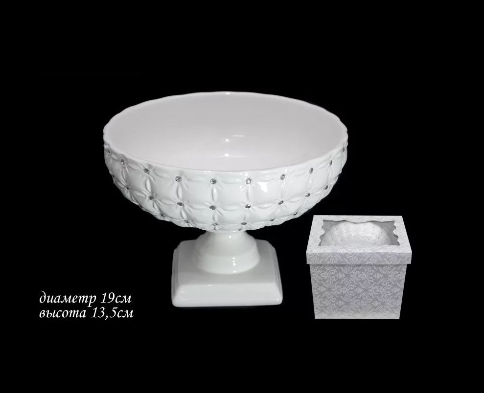 Конфетница на ножке, диаметр 19см в подарочной упаковке.Изделие производится на фабрике и проходит несколько этапов контроля качества.