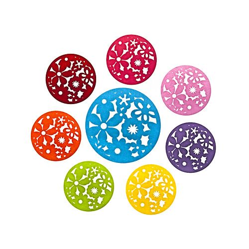Сервировочная круглая салфетка "Цветы" выполнена из фетра.