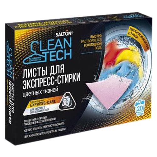 Листы для экспресс-стирки цветных тканей Salton CleanTech созданы специально для быстрых и коротких режимов стирки при низких температурах, которые используют для регулярного очищения и освежения одежды.