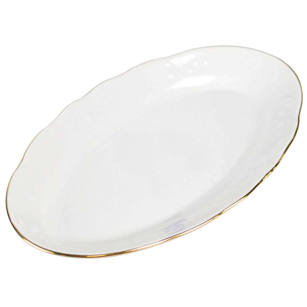 Селедочница от "Добрушского фарфорового завода" изготовлена из фарфора и украшена золотым ободком. Изделие подойдет для сервировки сельди в нарезке, а также разных видов закусок. Сервировочное блюдо-селедочница станет украшением вашего праздничного стола.
