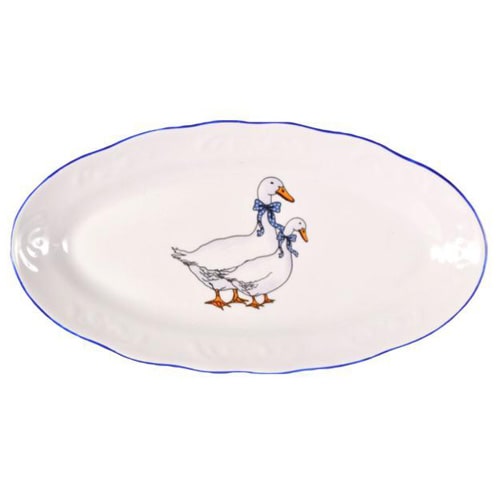Селедочница Гуси ДФЗ 25 см изготовлено из высококачественного фарфора. Селедочница декорирована изображением гусей. Такое блюдо придётся по вкусу как любителям классики, так и ценителям утонченности и изысканности. Посуда прекрасносмотрится как самостоятельный элемент сервировки,так и в наборе с другой посудой.