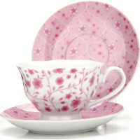 Предметы набора изготовлены из качественного фарфора и оформлены красочным цветным рисунком, стенки чашек имеют изящную волнистую поверхность.