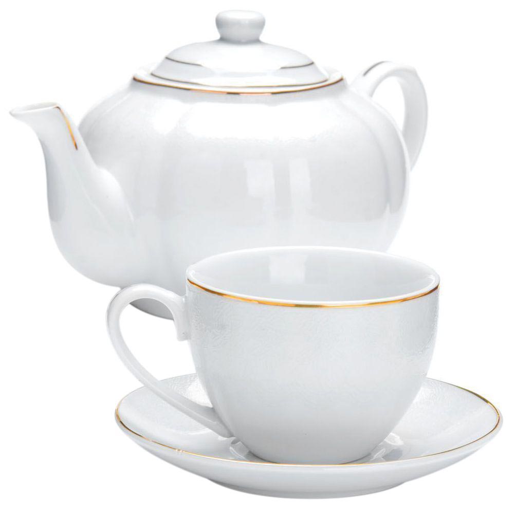 Чайный набор Loraine на 6 персон изготовлен из высококачественной керамики изысканного белого цвета.