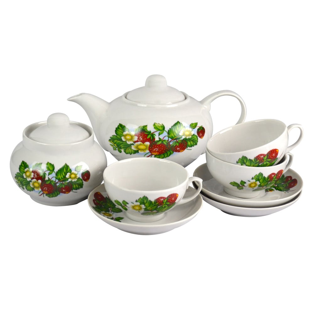 Чайный сервиз «Цветущая земляника» станет украшением на вашей кухне. Нежно-белый цвет поверхности и элегантный рисунок придутся по душе ценителям классического дизайна. Приятный на ощупь материал наполнит удовольствием каждое мгновение чаепития.