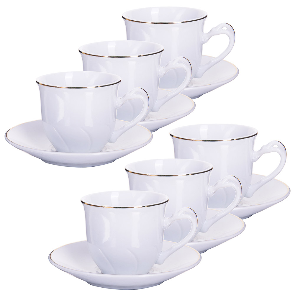 Кофейный набор "Loraine" состоит из 6 чашек и 6 блюдец. Изделия выполнены из высококачественного фарфора и имеют белый цвет с золотым декором. Такой набор прекрасно подойдет как для повседневного использования, так и для праздников.