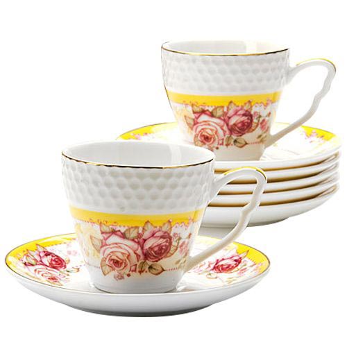 Кофейный набор "Loraine" выполнен из высококачественного костяного фарфора белого цвета и украшен нежным цветочным рисунком.
