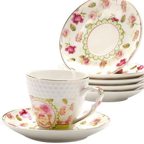 Кофейный набор "Loraine" выполнен из высококачественного костяного фарфора белого цвета и украшен нежным цветочным рисунком.