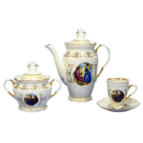 Состав набора: 6 чашек, 6 блюдец, сахарница, чайник.