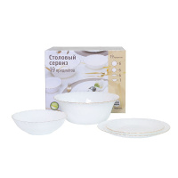 Выполнен из тонкого опалового стекла с золотой каймой, цвет - белый.