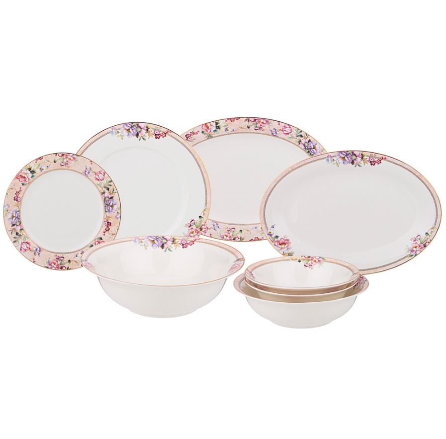 Комплектность: тарелка обеденная 25,5 см 6 шт., тарелка закусочная 20,5 см 6 шт, тарелка-салатник суповая 18*5 см 700 мл 6 шт, блюдо овальное 32*22 см 2 шт., салатник 23*7 см 1400 мл 1 шт., салатник 15,5*5 см 400 мл 2 шт.