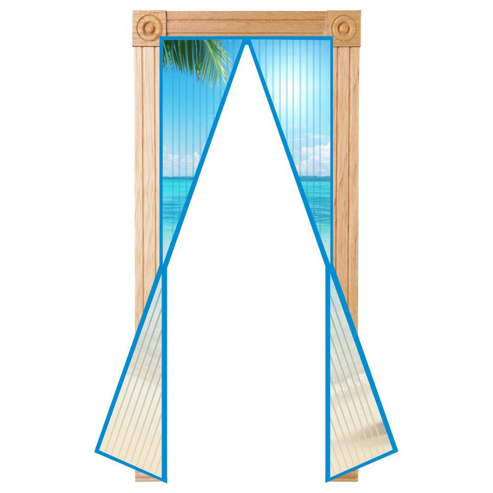 Антимоскитная сетка на магнитах. Размер: 210х100 см. Распашные половинки сетки на дверь, под весом магнитов быстро возвращаются на место и закрывают проход. Крепится на проем двери при помощи двусторонней липкой ленты или прикалывается кнопками. В комплекте: москитная сетка, 12 липких лент, 20 декоративных кнопок. Рисунок: пляж