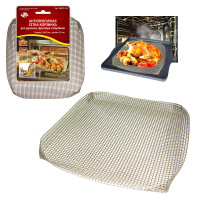 Сетка рассчитана на многоразовое использование, практична и проста в уходе. Изделие легко моется водой с любым жидким моющим средством и мягкой губкой. Не впитывает запахи. Жаростойкость - до 260°С. Изготовлена из тефлона армированного стекловолокном.