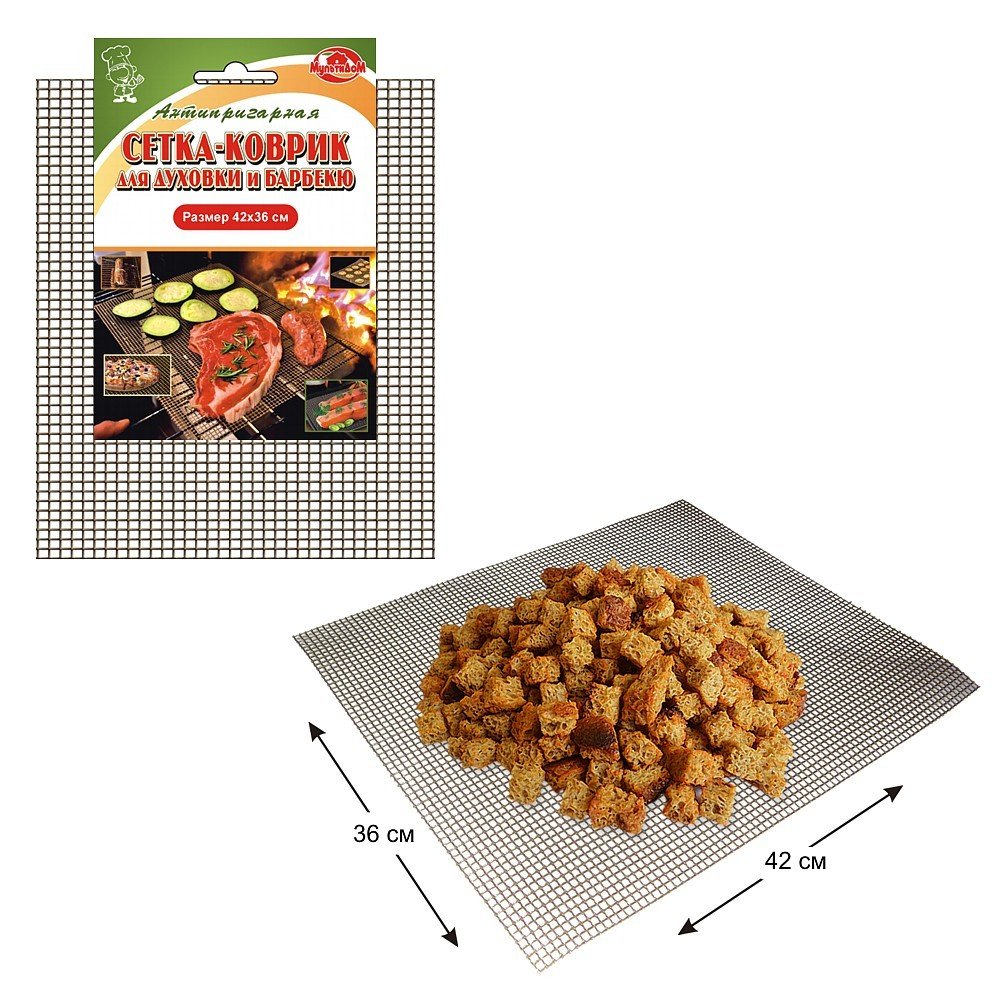 Коврик Мультидом защитит от пригорания поверхность решетки для барбекю или противня, позволит приготовить здоровую пищу без использования масла или жира. Сетка помогает воздуху циркулировать, что позволяет добиться хрустящей корочки во время запекания.
