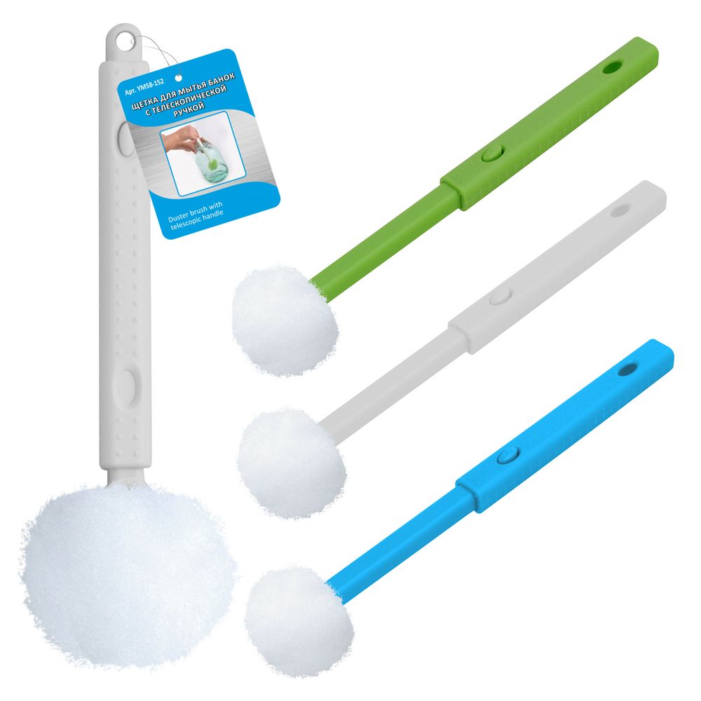 Щетка для мытья банок МУЛЬТИДОМ с телескопической ручкой поможет отмыть посуду, стаканы, банки и вазы.