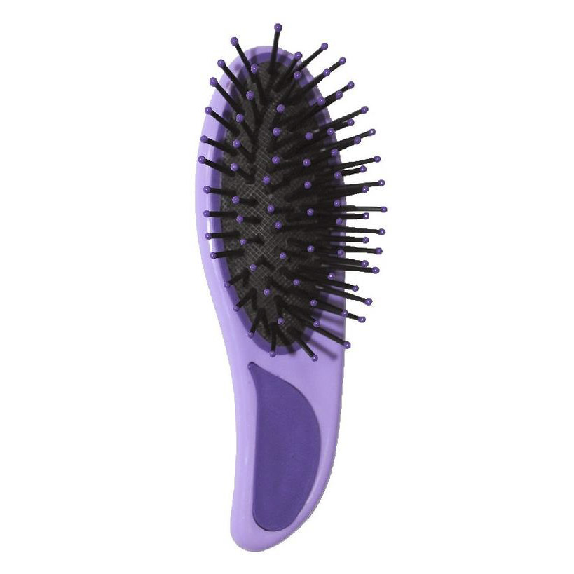 Щетка массажная на пластиковой основе с железными зубчиками с округлыми наконечниками хорошо расчесывает мокрые и запутанные волосы