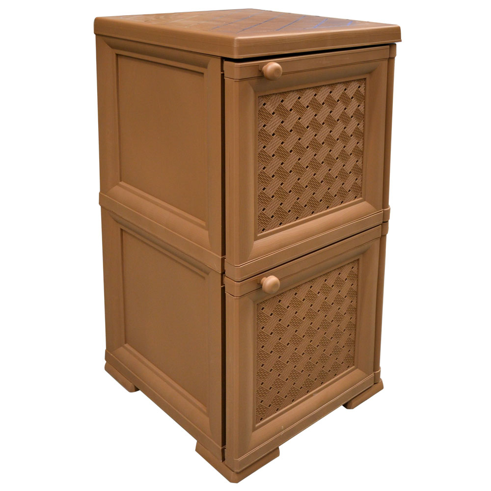 Шкаф от производителя Элластик-Пласт изготовлен из прочного полипропилена коричневого цвета.
