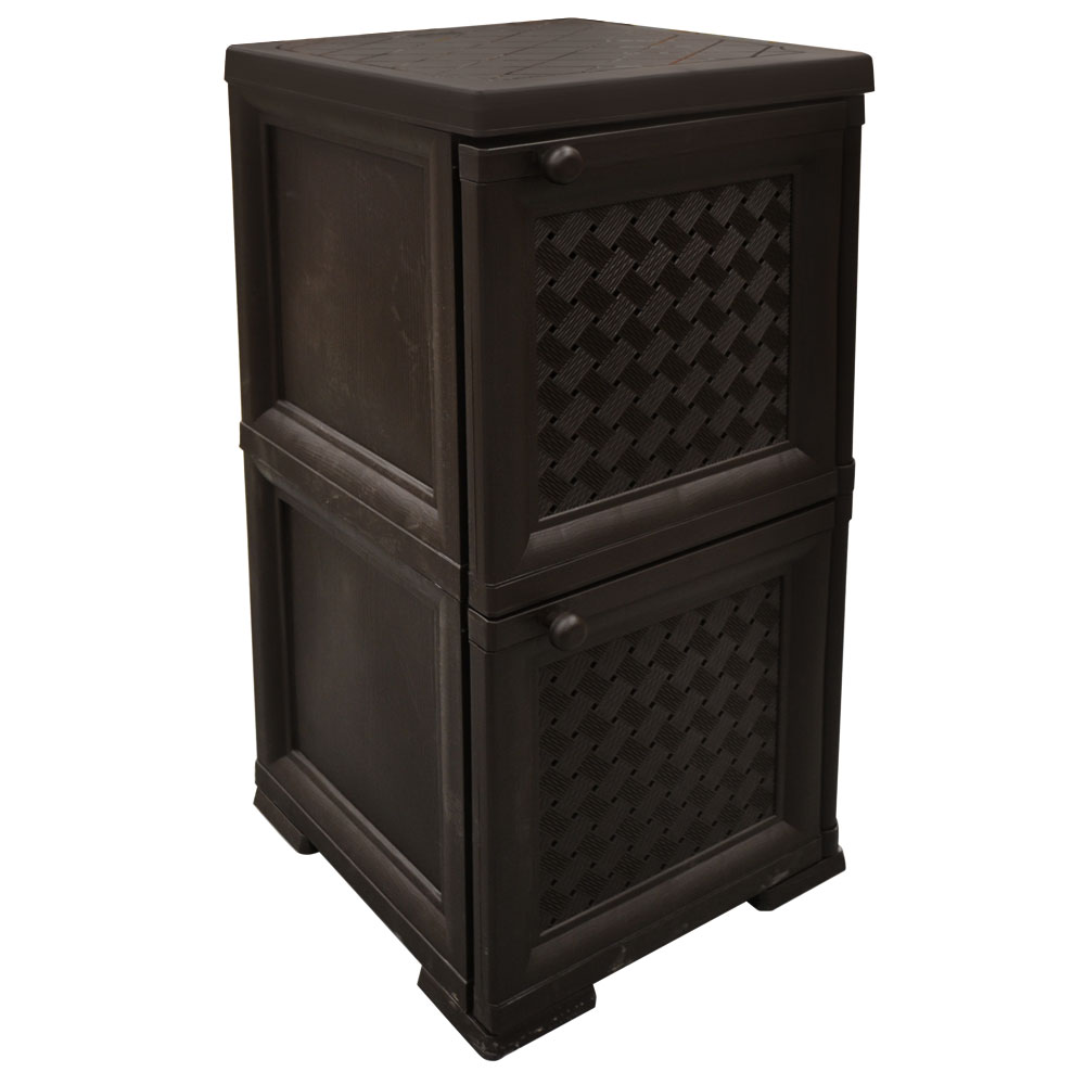 Шкаф от производителя Элластик-Пласт изготовлен из прочного полипропилена шоколадного цвета.