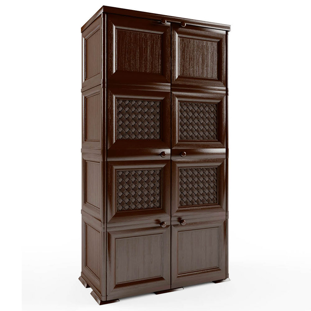 Шкаф от производителя Элластик-Пласт изготовлен из прочного пластика шоколадного цвета.