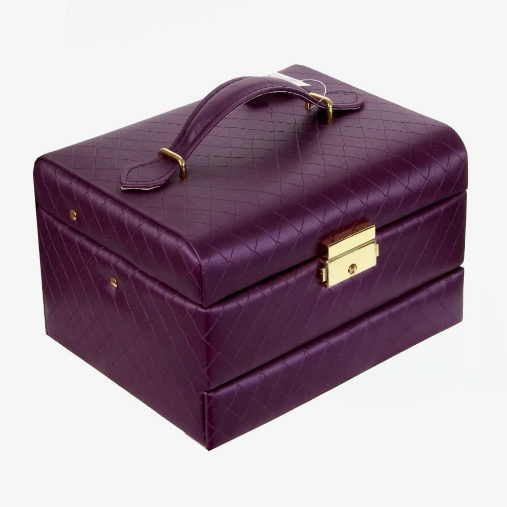 Шкатулка-автомат для украшений изготовлена из полимерных материалов, дерева, текстиля, стекла, металла.