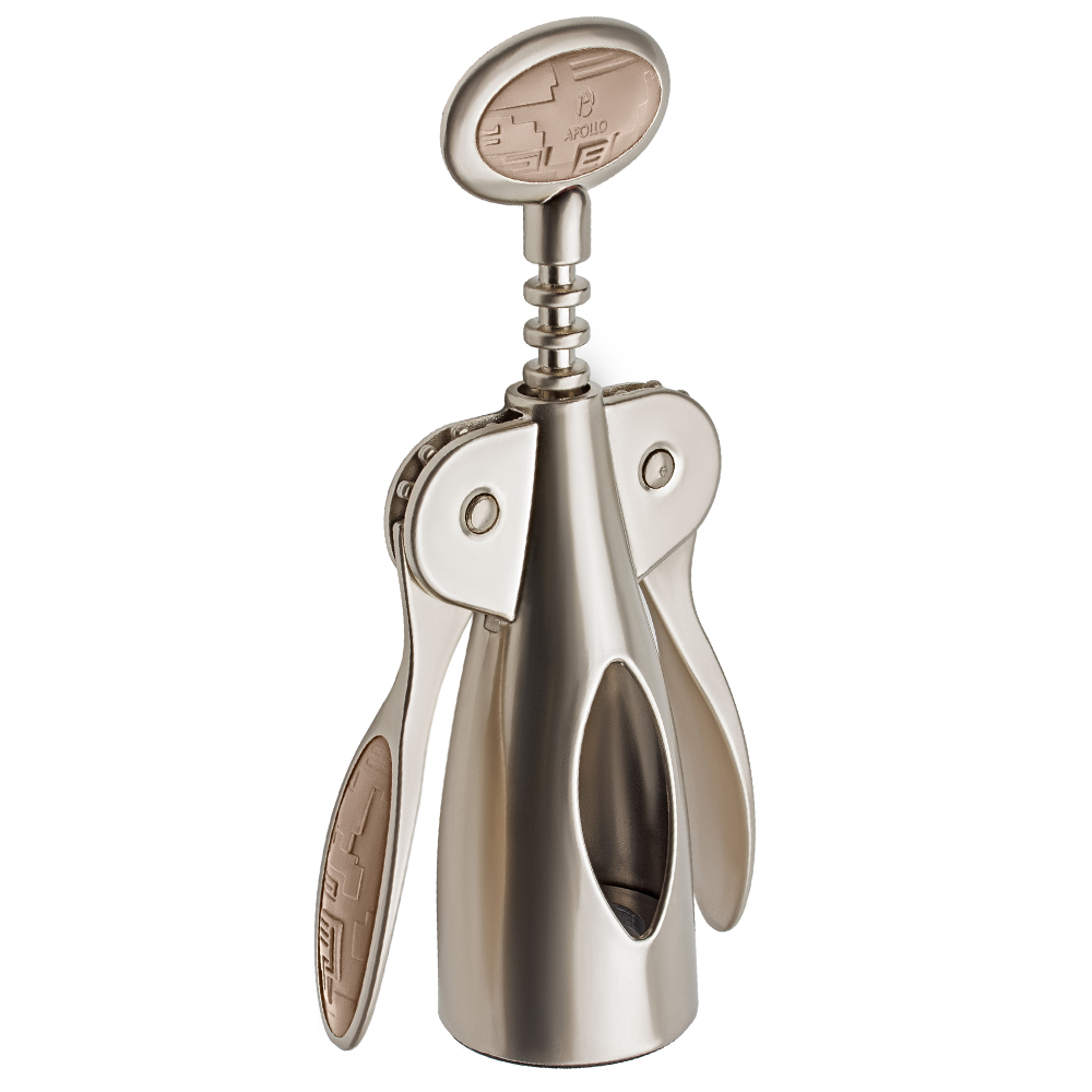 Штопор Apollo "DaVinci" имеет два рычага с помощью которых вы легко сможете вытащить пробку из бутылки. На ручках предусмотрены противоскользящие вставки.