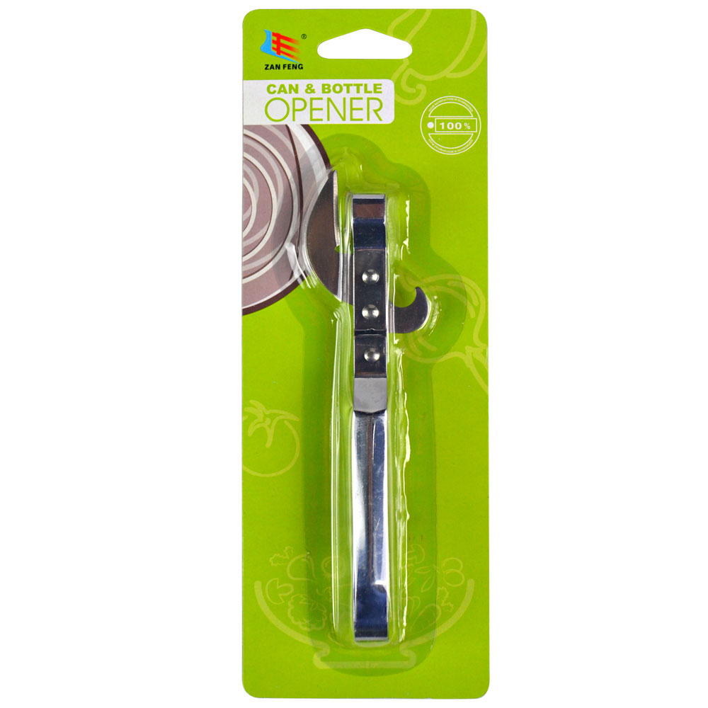 Изделие 2 в 1: служит в качестве штопора и открывалки консервных банок. Простой и универсальный аксессуар. С его помощью можно открыть емкости разных типов.