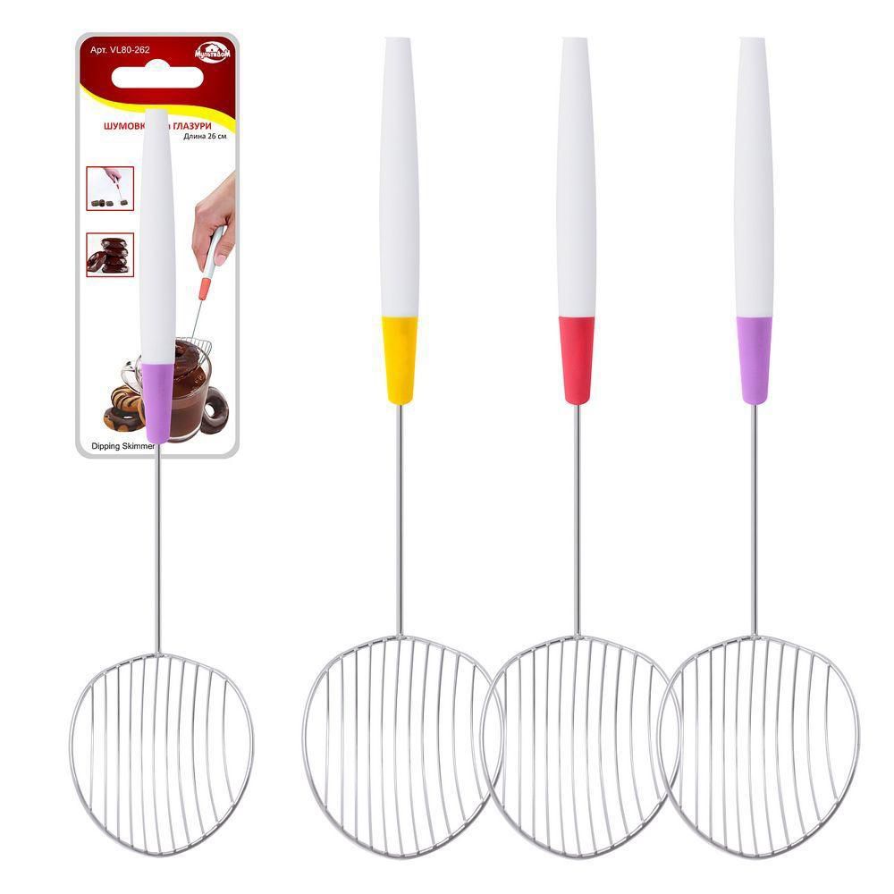 Шумовка используется для отделения лишней глазури и шоколада в процессе декорирования выпечки. Положите выпечку на шумовку и погрузите ее в жидкий шоколад или глазурь. Поднимите шумовку, дайте стечь лишнему и перенесите готовые сладости на сервировочные тарелки.