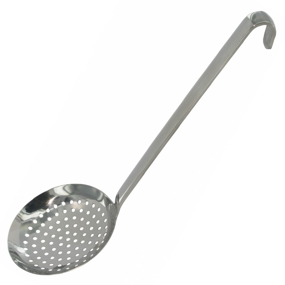 Шумовка кухонная "Luxstahl" выполнена из нержавеющей стали, представляет собой большую плоскую ложку с отверстиями для стекания жидкости, используется для съёма пены, выемки из котла мяса и рыбы и других готовых продуктов.