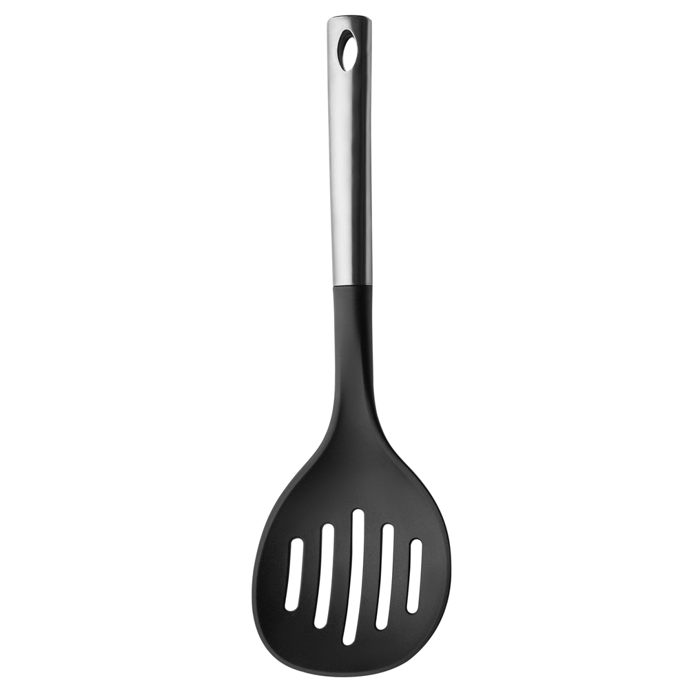 Шумовка "Strict" изготовлена из нейлона со стальной ручкой. Ручка имеет эргономичную форму и не скользит. Подходит для мытья в посудомоечной машине.