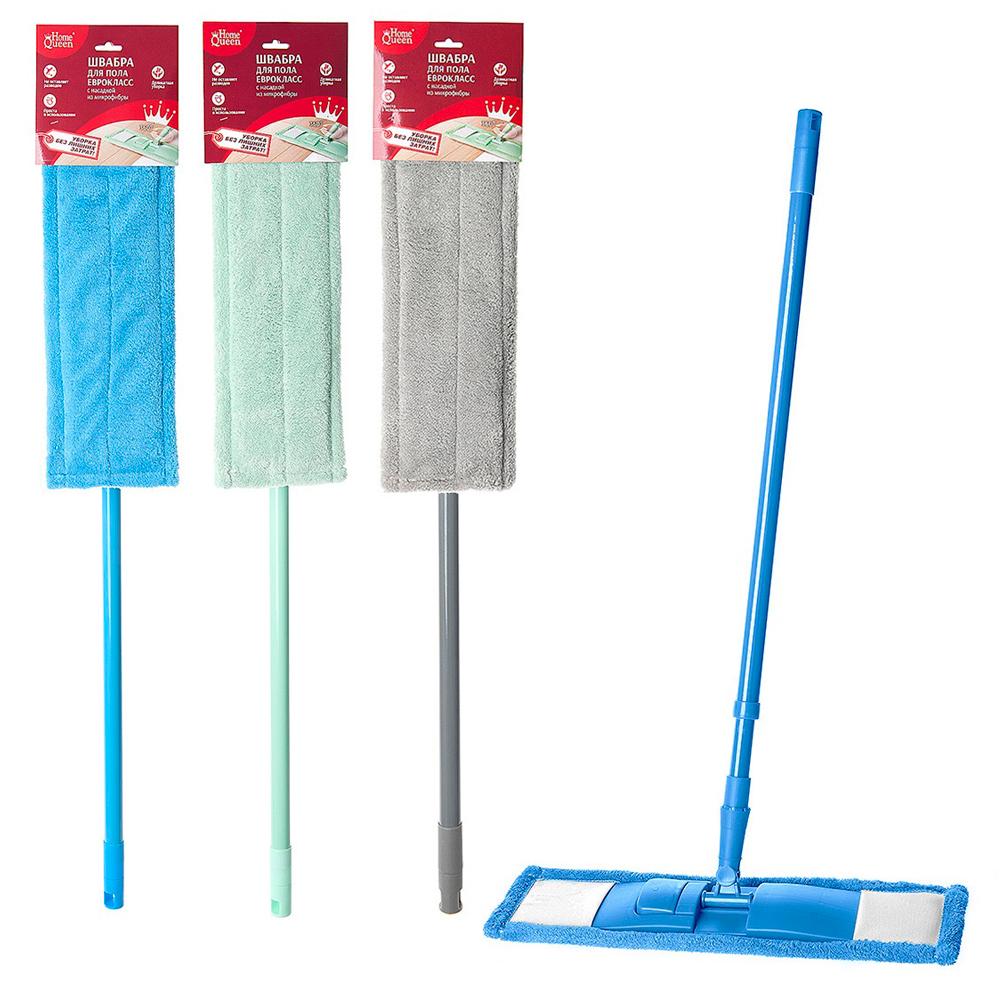 Швабра для пола Home Queen Еврокласс с насадкой из микрофибры 70061 подходит для мойки любых покрытий.
