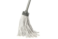 Швабра "Home Queen" выполненная из металла, полипропилена и хлопка, прекрасно справляется с труднодоступными загрязнениями, благодаря веревочной структуре.
