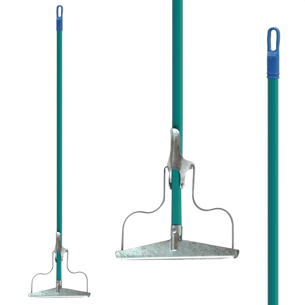 Удобная швабра "Лентяйка-экономка" с металлическим зажимом служит для влажной уборки дома.