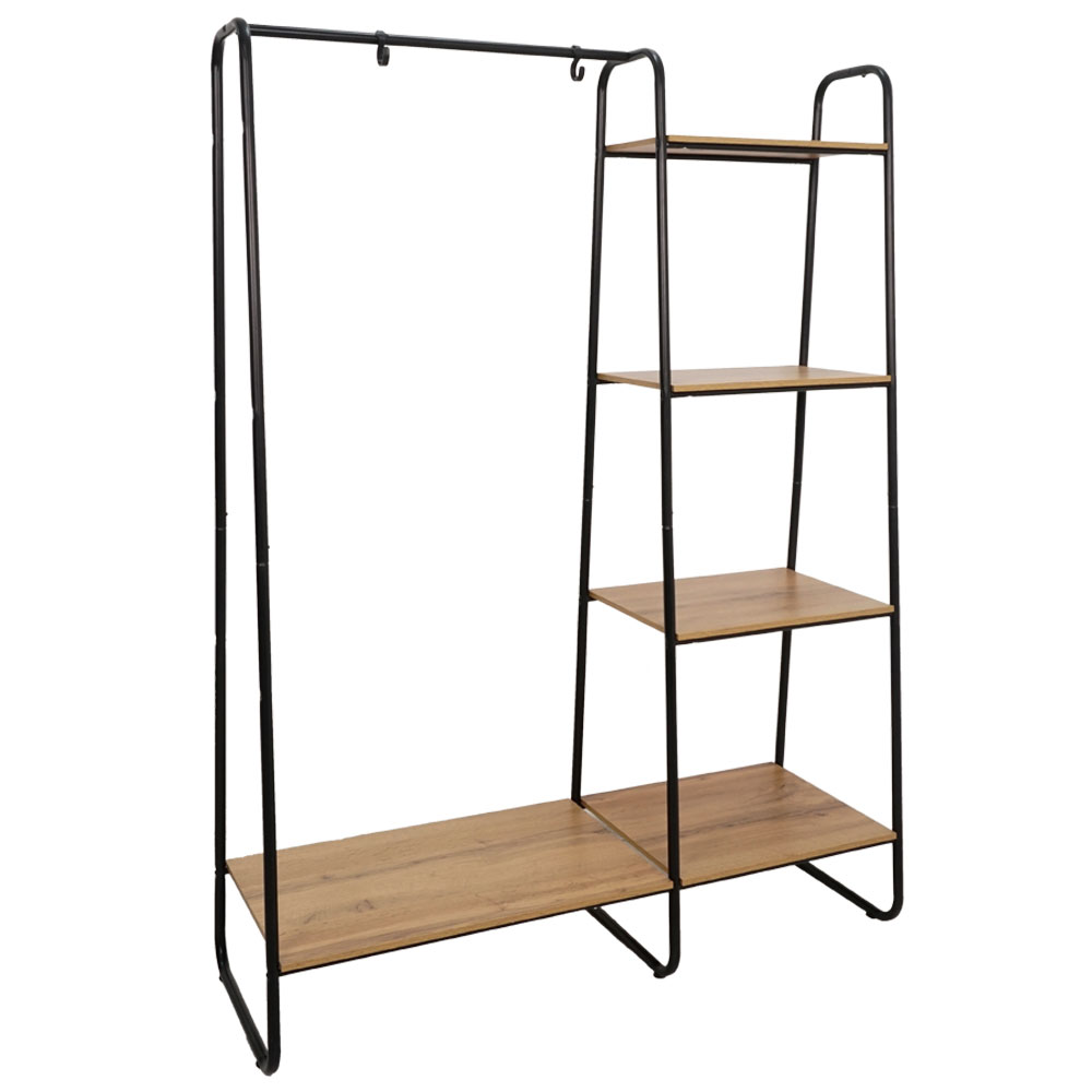 Стильная и функциональная гардеробная система хранения "Скандинавия 1" от российского производителя "ЗМИ" создана для компактного хранения вещей и предметов. Сочетание дерева с металлом позволит разместить систему хранения в любом интерьере. Долговечная, благодаря каркасу из стали, покрытому полимерно-порошковым покрытием. Полки стеллажа сделаны из ЛДСП. На перекладине можно разместить как плечики, так и подвесить цветы. Перекладина вмещает до 10 плечиков и выдерживает нагрузку до 20 кг. Понятная сборка, благодаря пошаговой инструкции. Поставляется в коробке, в разобранном виде. Способы использования системы хранения: Гардеробная напольная вешалка, стеллаж для хранения, подставка для цветов, витрина для магазинов.
