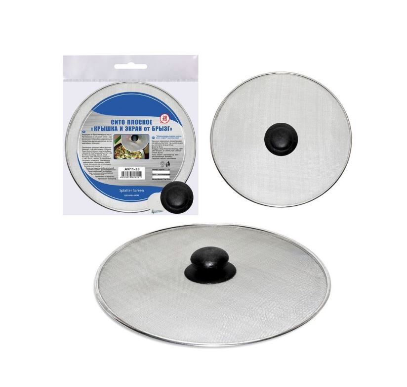 Крышка-экран защитный от брызг Мультидом AN11-33 из стальной сетки с хромированным покрытием, подходит для различной посуды диаметром 28 см.
