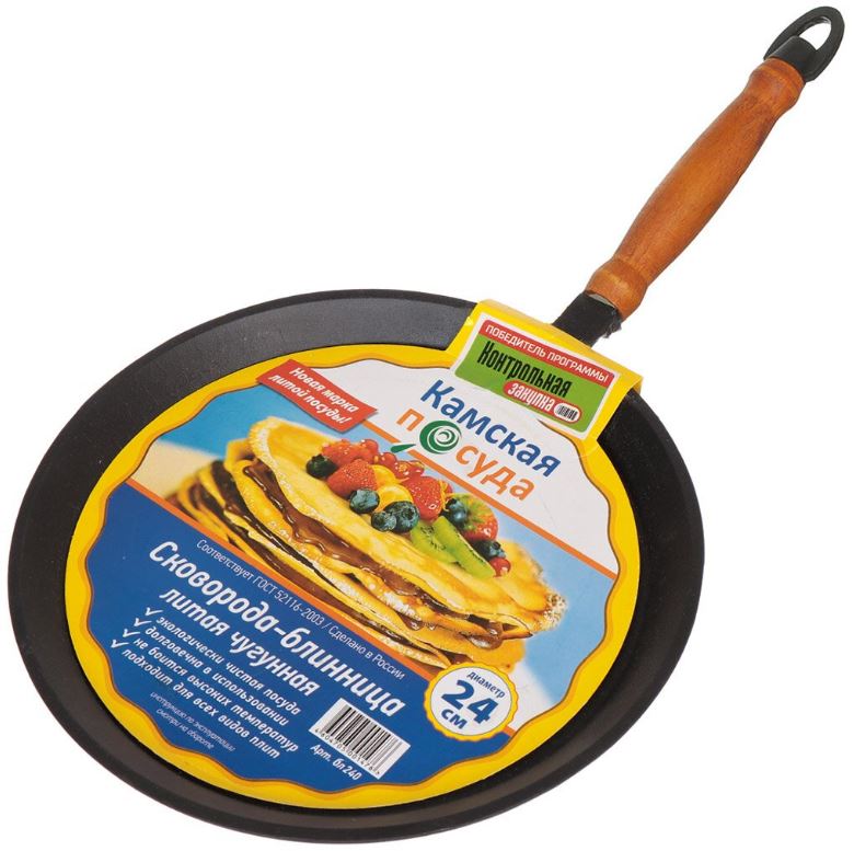 Литая чугунная посуда изготовлена по традиционной технологии литья чугуна в кокиль.